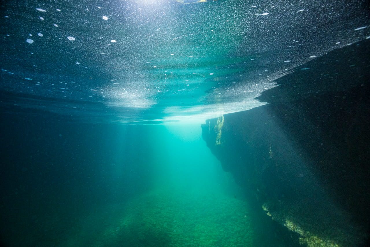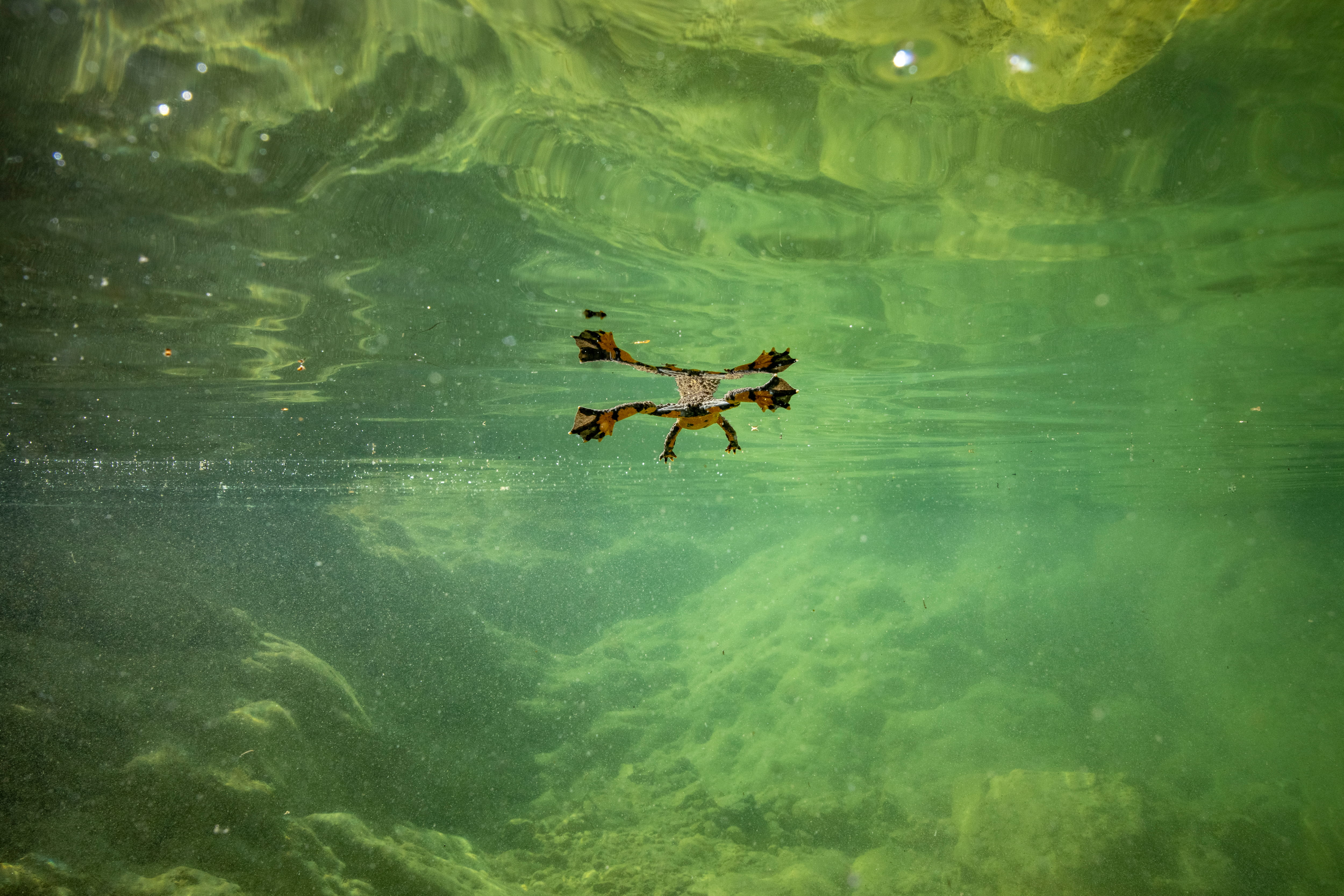 When I let myself go with the stream of a river, an elating feeling of flotation and weightlessness always invades me, mixed with the thrill of avoiding logs and rocks, while trying to grab photos at the same time. I really enjoy this kind of underwater “street photography” and strive to document the fleeting interplay between light, colours, water and minerals as I swim by.