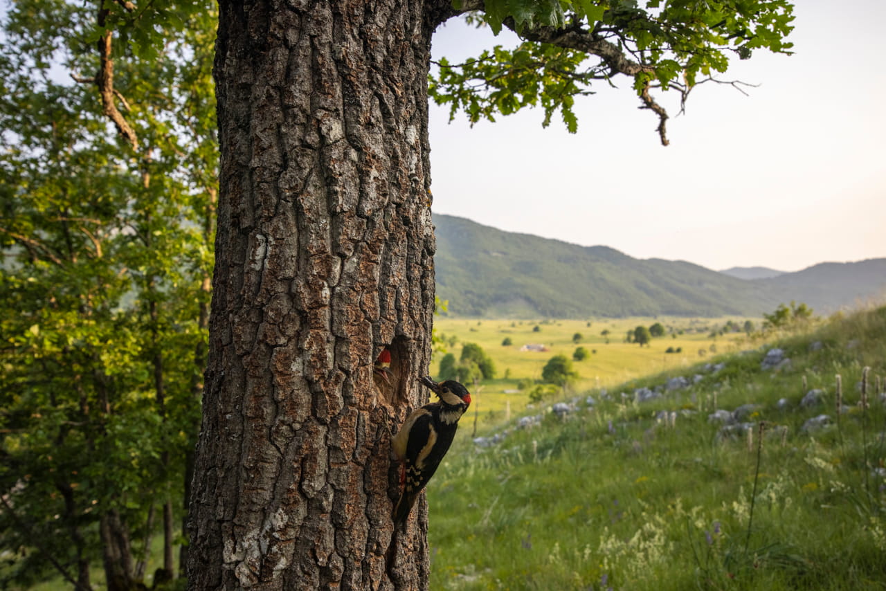 Foxes, hares and roe deer timidly emerged from the woods at sunrise. Frogs and toads called from the shallow ponds. The song of skylarks, swallows and pipits filled the sky. Shrikes, hoopoes and buntings perched atop the flowering wild rose scrubs. Moving gently among the rocky patches, one could spot several lizard species, including the astonishing green lizard and the blue sharp-snouted one. And on a few warm mornings, we could even come across the intriguing horned viper. With its marvellous diamond pattern on its back and the fierce look, “Poskok”, or “jump” as it is named in Montenegrin, was surely one of the species ranking the highest on my shotlist for this assignment.