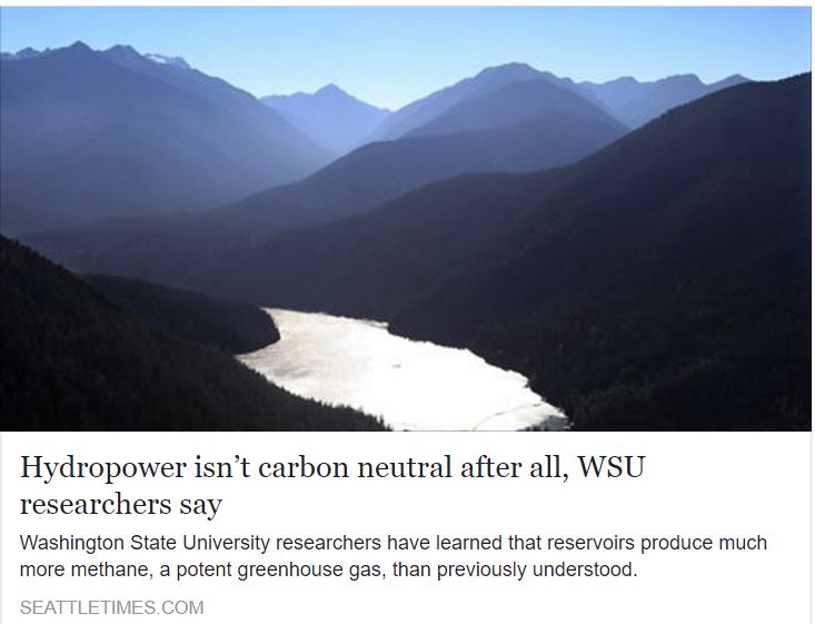 Hydropower is not green, it is not even carbon neutral, as Washington State University researchers now confirm.