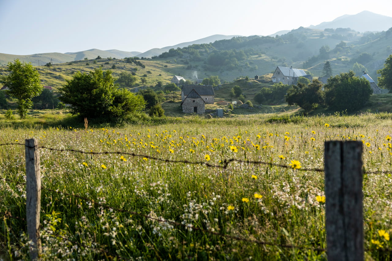 The importance of Komarnica does not lie only in its clear waters and wild canyon. It also comes from the lush forests clinging to its cliffs, and perhaps even more from the dream-like open landscape stretching along its rims. A few small villages dot the region crossed by the Komarnica, between the town of Šavnik in the east and the town of Plužine in the west. The first is located very close to the mysterious canyon Nevidio (“Never seen”), which formally represents the beginning of Komarnica. While the latter virtually marks its very end, with the reservoir generated by the huge dam built in the 70s on the Piva river. Despite the low human density, the hillsides and plateaux encompassing the Komarnica canyon clearly show the effects of centuries of human presence.