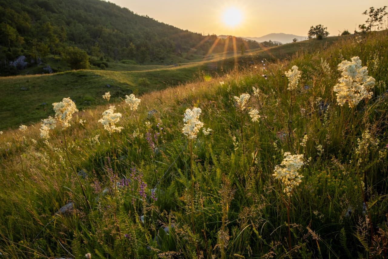 Sheep husbandry and small-scale farming are still practised today, and their persistence over time has generated a complex scenery with beautiful open pastures, thick hedgerows and little woods surrounding rugged rocky outcrops. And in such a rich landscape, mosaic biodiversity thrives! During my assignment on those long June days, from sunrise to sunset, I was blown away by the beauty of the place. The vast fields were all in bloom: thousands of flowers of dozens of different species flooded the plains with yellow, white and scarlet colours, whereas tiny wild orchids, sober iris and fuchsia gladiolus peered among the most common plants.